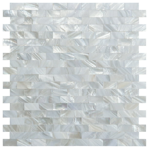 Art3d White Opal Subway Pattern Seamless 12 In X 12 In Mother Of Pearl Tile 1 Pack Walmart Com